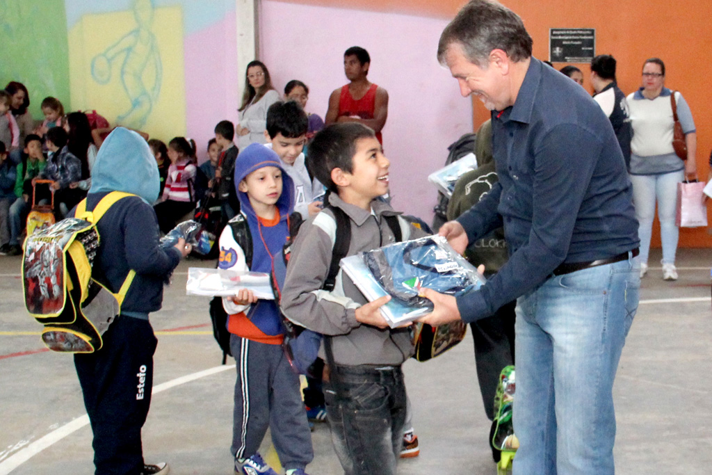 Também participou de ambas as entregas a secretária municipal de Educação e Esporte, Carla Escosteguy. Nesta terça-feira, será a vez dos alunos dos CMEBs Clodovino Soares e Dulce de Moraes receberem os materiais.